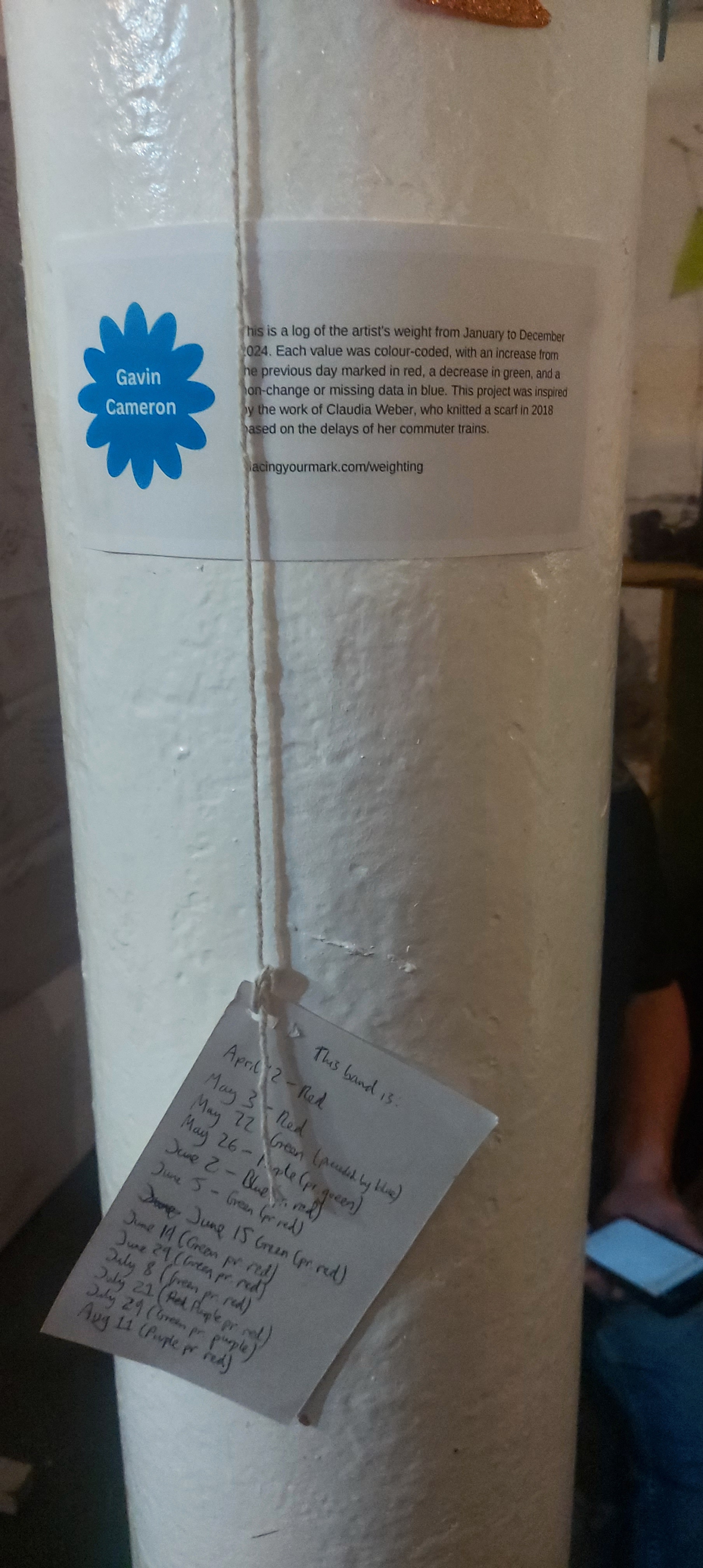 I then converted the colours into a corresponding chain of loom band. As I’m not artisitic in any way, however, I told the organisers to display it in any way they wished. It’s difficult to see in a picture, but it ended up in an M-shape on the ceiling of the café: